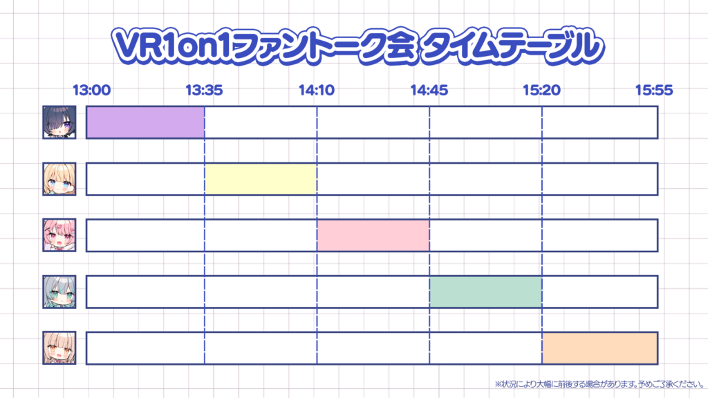 ●複数ライバーのチケットをお求めいただいた場合、ライバーの出演時間によっては長時間お待ちいただく場合がございます。